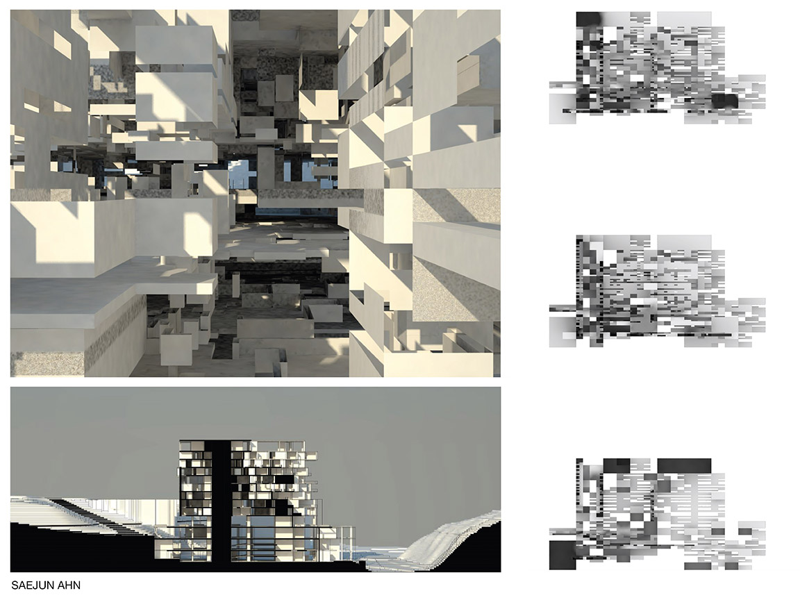 Fuzzy Sets are the cornerstone of the mathematics of uncertainty. Fuzzy systems in mathematics refer to an approximate mode of reasoning, to a non-binary logic based on the notion of dynamic ranges. Parallel to that, this studio investigates the design of architectural objects that can fit within a behavioral range of specific ecological niches. Working on the edge of two distinct environments, water and land, we propose strategies for adaptation of matter into existing site strata, while negotiating the formal trends of dynamically controlled architectural systems. This studio introduces students to computation as a generative framework for architectural design, and integrates computational processes in order to speculate on specific design interventions within the urban environment. Through iterative investigations of scalar, formal, tectonic, and performative logics, students define and develop design protocols using geometric constraints. The goal is to establish a design response within a dynamic framework of geometrically defined tectonic system.