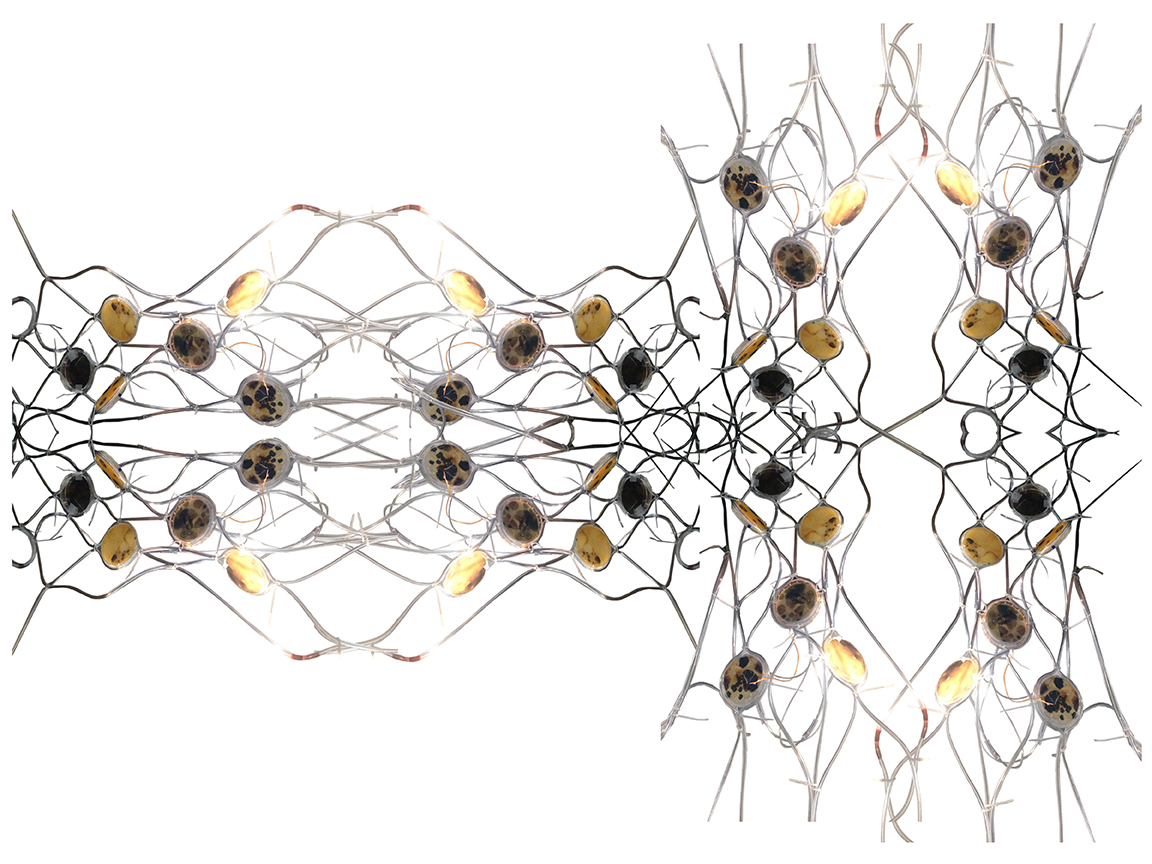 Medusa is a proposal for an interactive 'chandelier-like' installation that plays on mythological notions of toxicity and beauty in our contemporary culture. In Greek mythology, Medusa - originally a ravishingly beautiful maiden - was turned by goddess Athena into monster, a Gorgon, generally described as a winged human female with living venomous snakes in place of hair. Expanding on the theme of poisonous strains of beauty we engage the presence of mold within built environment. Actuating mold growth in the network that responds to light levels, human occupancy and movement, this system strives to visualize the invisible microbiotic particles that are always present around us. As the pattern of concentration and growth occur, our attraction to toxicity may mobilize human reflection and behavior, which confronts the contradictions of beauty and human health.